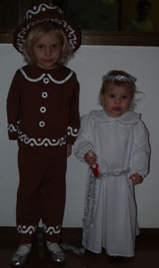 | Pepparkaksgubbe och tärna vid kyrkans luciatåg |