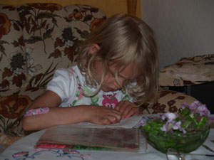 | Maria och hennes älskade stuga, lägg märke till skorna! |
