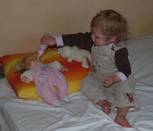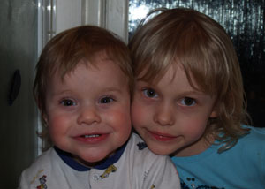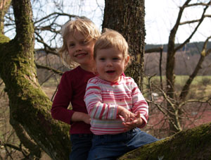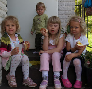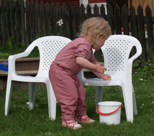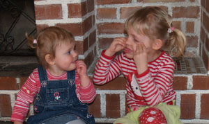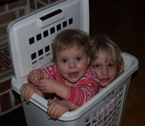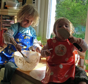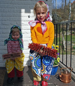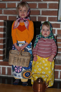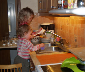 | Farmors små hjälpredor. Elllinor och Maria hjälper farmor att diska i stugan |